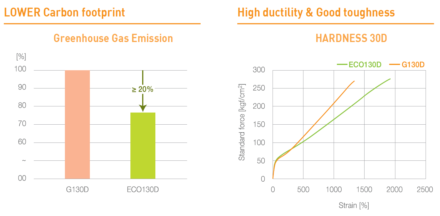 Skypel ECO uses Industrial Field source and offers hardness levels and performance comparable to standard TPEEs.